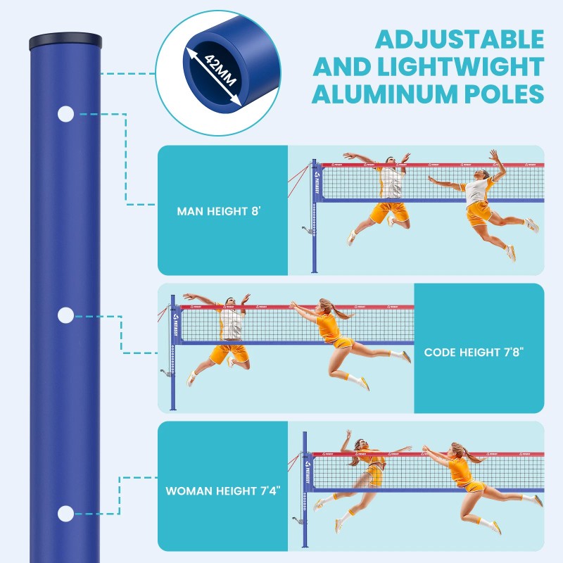 PATIASSY Volleyball Net for Backyard Outdoor Adjustable Height Aluminum Poles Heavy Duty