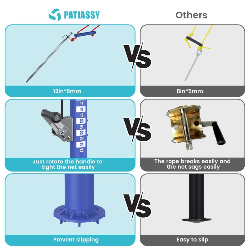 Heavy-Duty Galvanized Steel Winch System--Our unique winch system, crafted from galvanized steel, provides easy and precise net adjustments. Keep the net taut and reduce sagging with minimal effort, making it perfect for outdoor volleyball games