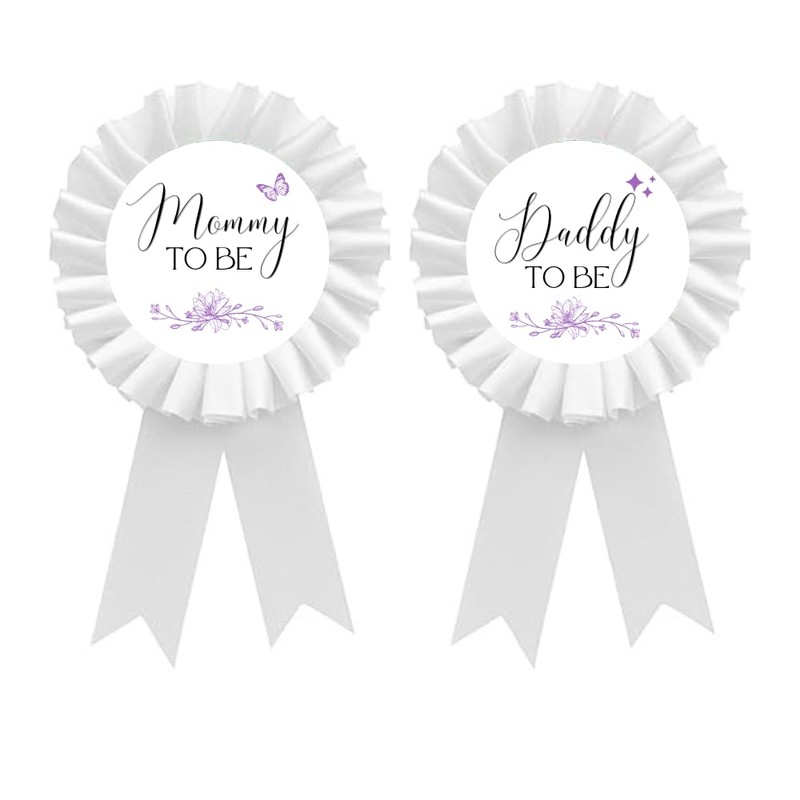 PATICARRY Purple Sage Theme Mom to Be & Daddy to Be Tinplate Badge Pins for Baby Shower Decorations Welcome Baby Girl or Boy, Baby Shower Button New Dad for Gender Reveals Party, Baby Celebration