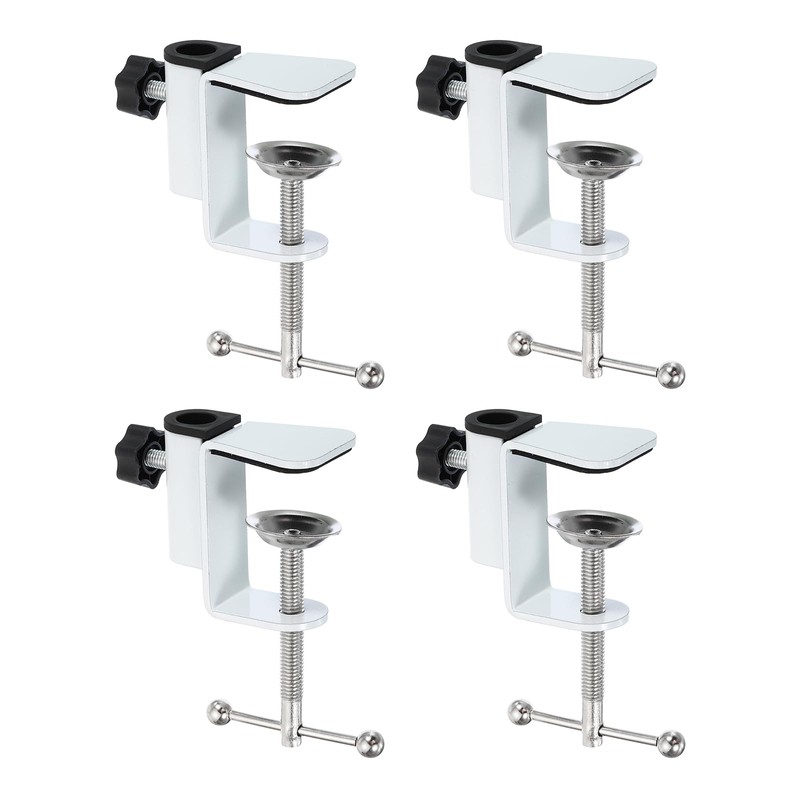 PATIKIL 0.47" Hole Dia. Desk Clamp, 4 Pcs Aluminum Alloy Bracket Universal Adjustable C-Clamp Mount Holder for Microphone Mic Arm Table Lamp Stand, White