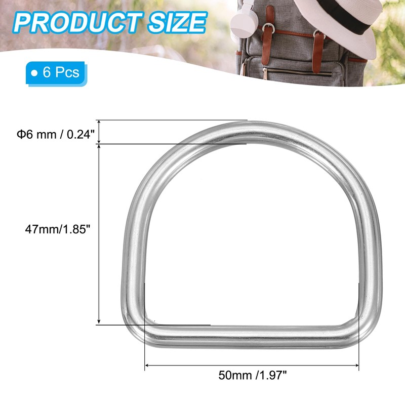 - Material: 304 Stainless Steel;Total Size: 25 x 22 mm / 0.98 x 0.87 inch (WxH);Wire Diameter: 4 mm / 0.16 inch;Quantity: 6 PCS x Metal D Rings