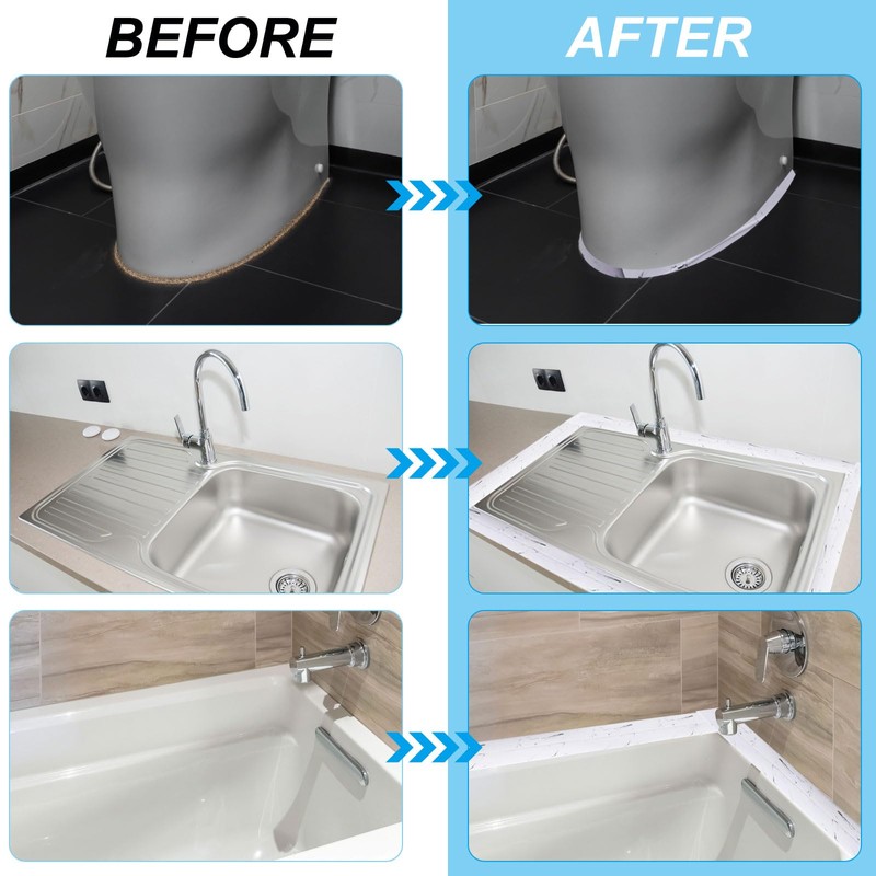 - 用途: 自己粘着性コーキングストリップは、お好きな長さにカットでき、浴室、キッチン、壁、床で使用でき、浴槽、トイレ、コーナー、バスルーム、キッチンカウンタートップ、洗面器、シンク、ガスコンロの接合部に最適で、長い間清潔で整頓された状態を保ちます