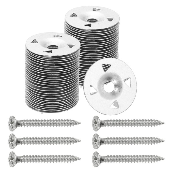PATIKIL 1-1/8 Insulation Washers, 100 Set 28mm Metal Foam Board Fasteners Perforated Plaster Washers with Screws Galvanized Steel for Foam Board Fixing Fastening Wall