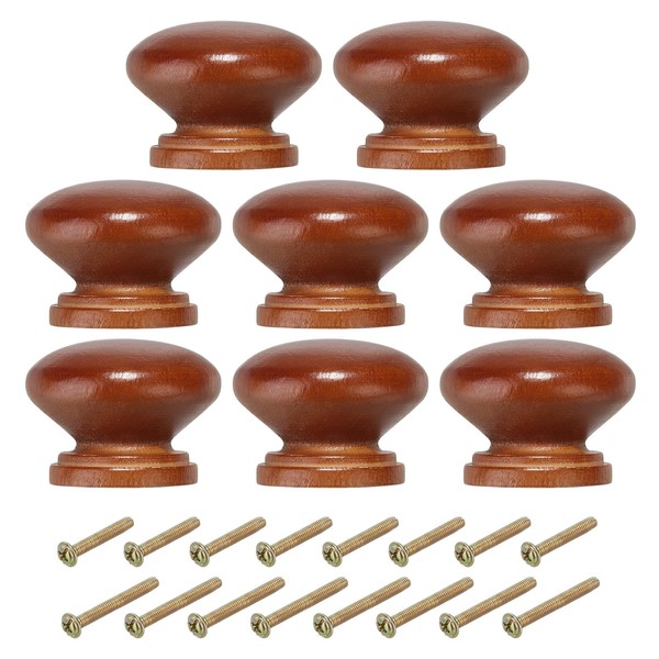 PATIKIL 1-3/8 Inch Knobs, 8 Pcs Round Drawer Dresser Knobs Wood Handles Knobs Drawer Pulls with Screws for Kitchen Cupboard Furniture Door, Brown