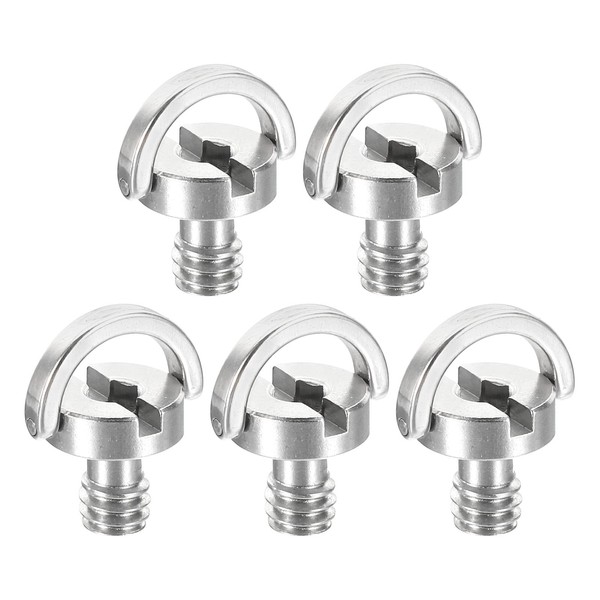 PATIKIL 1/4-20 Thread 13mm Length D-Ring Stainless Steel Camera Fixing Screws, 5 Pack D Shaft Quick Release Plate Screw for Camera Tripod/Monopod, Silver