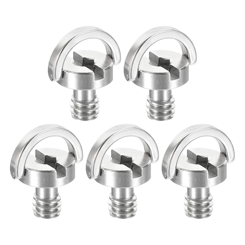 - Color: Silver; Material: 303 Stainless Steel; Head Style: Hex/Slot Combo; Thread Size: Male Thread 1/4-20; Thread Shaft Length: 5mm/0.2-inch; No Thread Length: 4mm/0.16-inch; Total Length: 13mm/0.51-inch; D-ring Outer Diameter: 16.4mm/0.65-inch; Screw Head Outer Diameter: 12mm/0.47-inch; Packing List: 5 x D-Ring Stainless Steel Camera Screws