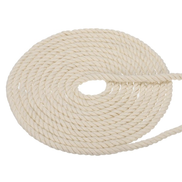PATIKIL 1/4 Inch x 25ft Natural Twisted Cotton Rope 3 Strand Strong Thick Cotton Rope Tug of War Rope for Railings Crafts Home Decor, White