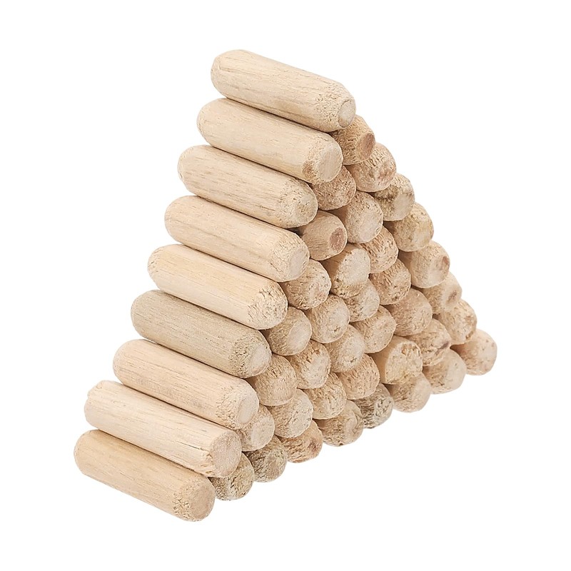 - Advantage: The fluted dowel pins are made of natural hardwood material, high density, high strength, not easy to break, detachable and reusable, easy to store, and used for a long time. The two ends of the beveled slot wood dowels are tapered for easy connection and secure fit between wooden components