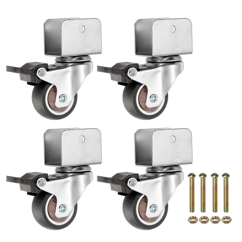 - Material: Thermoplastic Rubber; Wheel Diameter: 38 mm / 1.5 Inch; Wheel Width: 16.5 mm / 0.65 Inch; Clamp Opening Width: 25 mm / 1 Inch; Installation Height: 53 mm / 2.1 Inch; Base Plate Size: 40 mm x 31 mm / 1.6 x 1.2 Inch; Packing List: 4 Pcs x Caster Wheels, 4 Pcs x Screws, 4 Pcs x Nuts; Load Capacity: 44 Lb Capacity Per Caster, 176 Lb 4-wheel Total Load Capacity