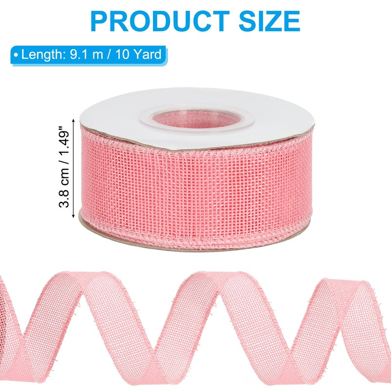 - Color: Pink; Material: linen; Width: 3.8 cm / 1.49 inch; Length: 9.1 m / 10 Yard; Package List: 1 Pcs x Natural Jute Ribbon