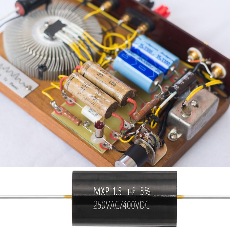 PATIKIL 1.5uF 250AC/400DC V Frequency Divider Capacitor, 2 Pcs Axial Audio Speaker Crossover Step-less Film Capacitor MKP Capacitor for Audio Equipment Appliances, Black