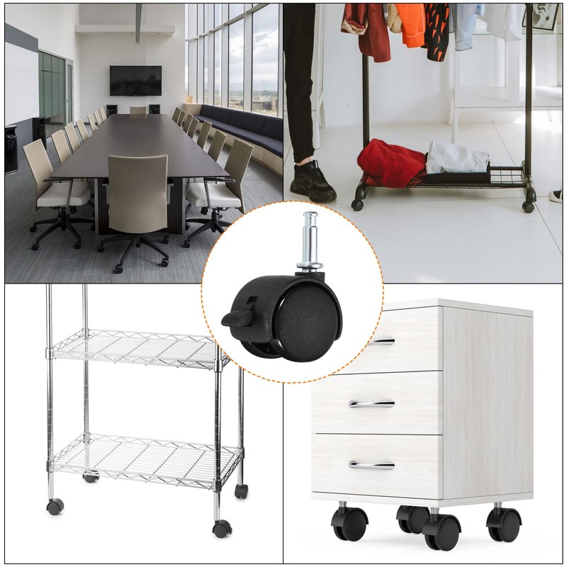 - Application: The Insert stem caster wheels are designed for replacing old and broken wheels on desks, storage racks, chairs, lockers, shoe racks, bookshelves, and other furniture. Widely used in homes, offices, libraries, bars, shops, tables, etc.