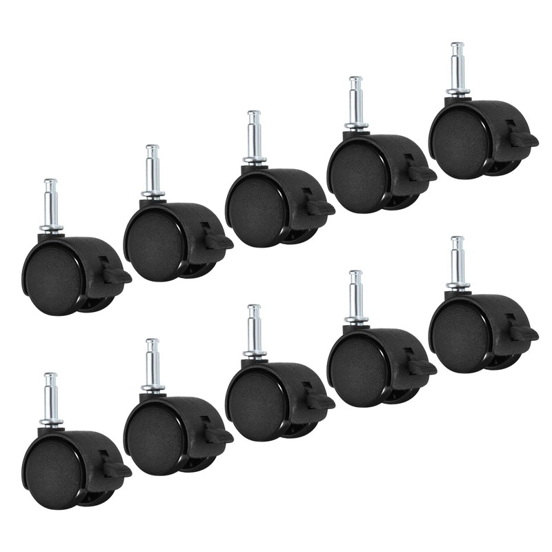 PATIKIL 1 Inch Swivel Stem Casters, 10 Pack Nylon 360 Degree Insert Swivel Stem Wheels with Brake for Chair Shelf Furniture Replacement, Black