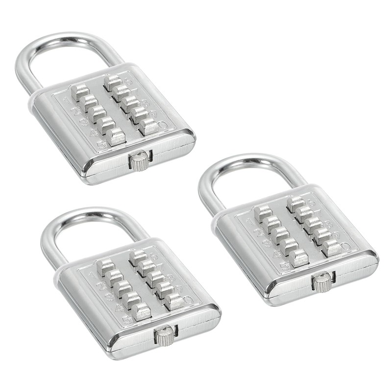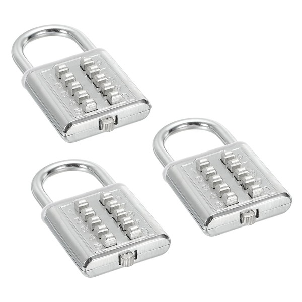 PATIKIL 10 Digit Combination Lock, 3 Pack 5 Position Locking Mechanism Push Button Security Digital Lock for Gym Sports Locker Silver Tone