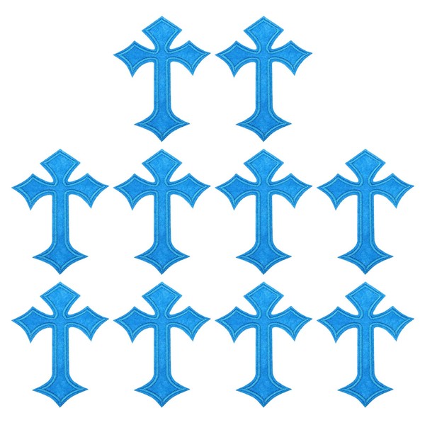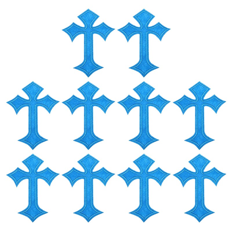 PATIKIL 10 Pcs Cross Embroidery Patch Cross Sewn Iron on Decorative Patch 4.1"(L) x 2.8"(W) Blue