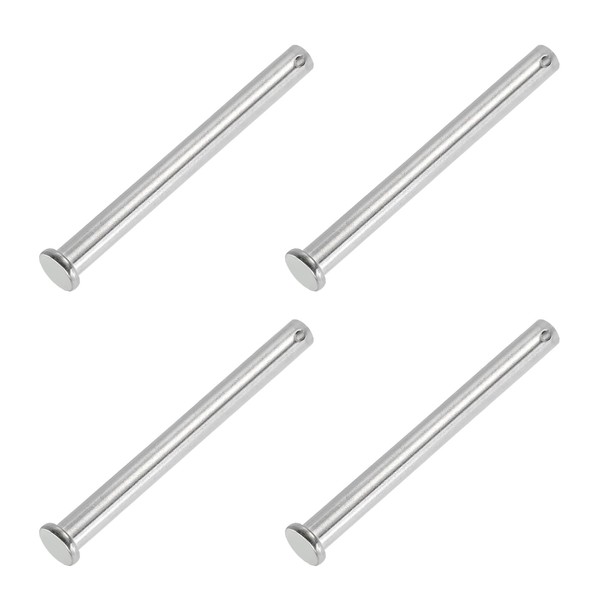 PATIKIL 10 x 120 mm Single Hole Clevis Pins, 4 Pcs 304 Stainless Steel Flat Head Pin for Hitch Pin Lock Link Hinge Systems, Silver