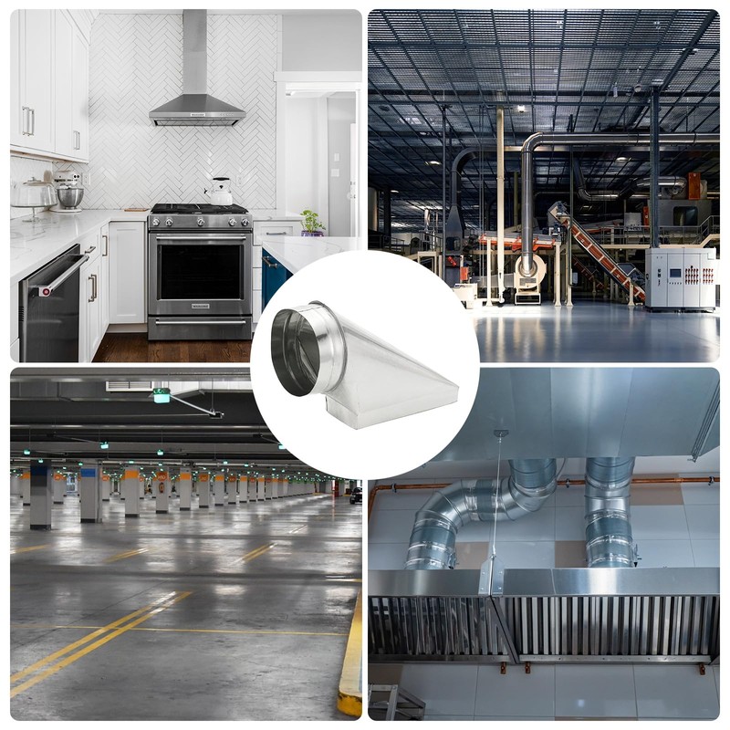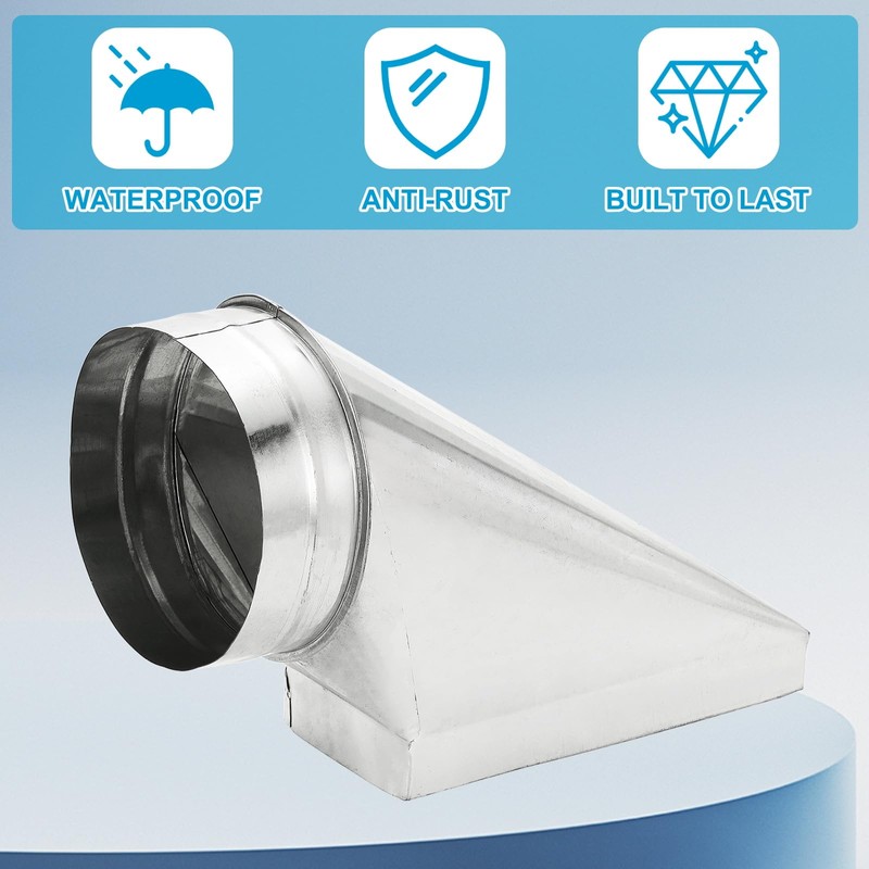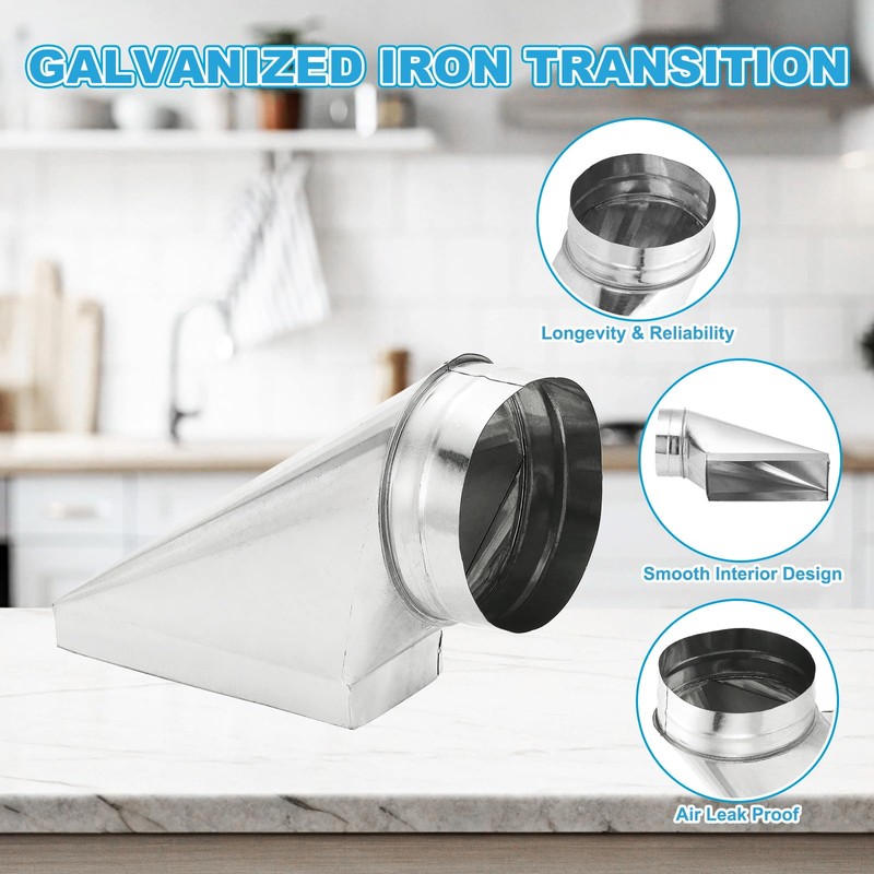 - Advantage: Crafted from a galvanized plate, this transition is longevity and reliability. Its rust-proof nature allows for both indoor and outdoor usage, withstanding bad weather conditions. The smooth silver finish adds aesthetics without compromising strength. The smooth interior design significantly reduces wind resistance, contribute to a more efficient airflow and a comprehensive ventilation solution.