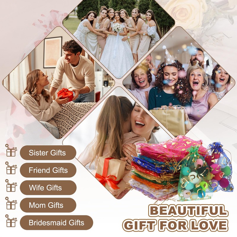 • Application: Sheer Heart Printed Organza Bags add a touch of charm to any gift or favor. Perfect for weddings, parties, company, church, hotels, stores to wrap favor gifts, and retail displays. Pack presents for Valentine's Day, Mother's Day, festivals, and various gifts
