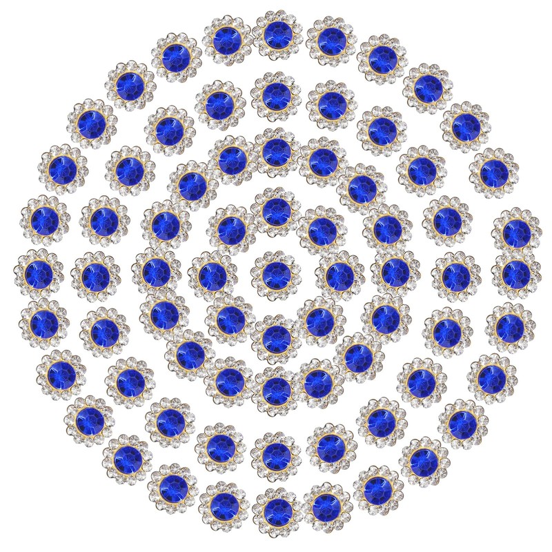PATIKIL 100Pcs 10mm 2 Layers Sew on Flower Rhinestones Crystal Dark Blue