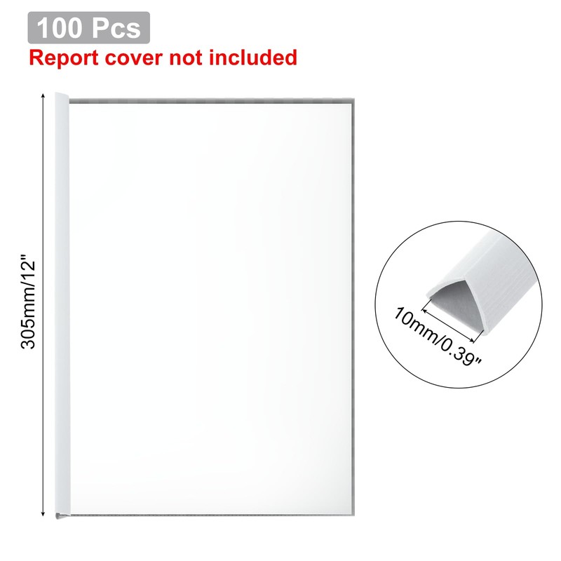- Material: Plastic; Color: White; Size: 305 x 10mm / 12 x 0.39inch; Paper Capacity: 70 sheets A4 size papers; Packing List: 100Pcs Binding Bars