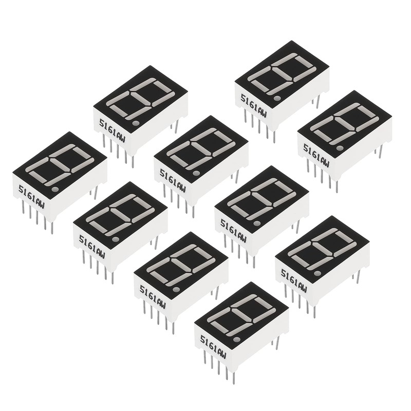 - Light Color: White; Model: 5161AW; Package Type: Plug-In; Common Pins: 1&6; Voltage: 3.3V; Number of Pins: 10; Number of Characters: 1 bit; Common Type: Common Cassode; Character Height: 14 mm; Size: 12.6 x 19 x 8 mm(L*W*H)