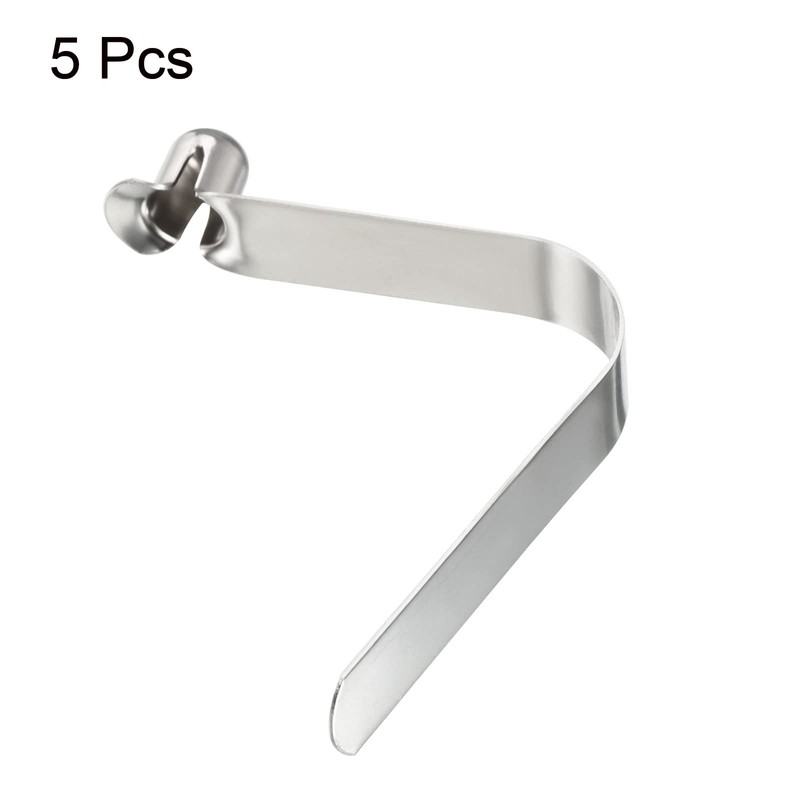 - Color: Silver; Material: Manganese Steel; Body Size: 50 x 10 x 0.5 mm/1.97 x 0.39 x 0.02 inch (L*W*T); Push Buttons Size: 10 x 8 mm/0.39 x 0.31 inch (L*Dia); Packing List: 5 x Spring Clips