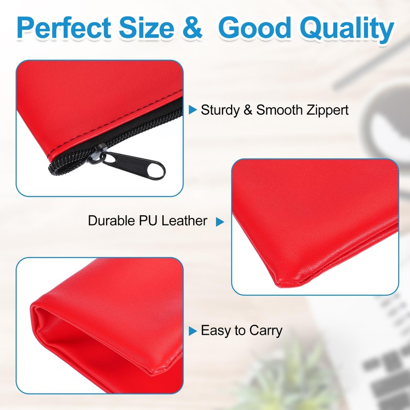 - Color: Dark Red; Material: PU Leather; Overall Size: 280 x 155mm / 11x 6 inch (L*W); Package Contents: 6 x Deposit Bag