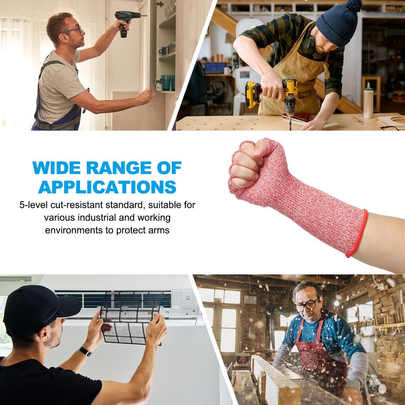 - Application: HPPE arm protection sleeves with a 5-level cut resistance standard are designed to protect arms from cuts in various industrial and work environments. Suitable for manufacturing plants, construction sites, auto repair shops, metalworking industries, kitchens, gardens, farms, or any workplace where arm protection is needed