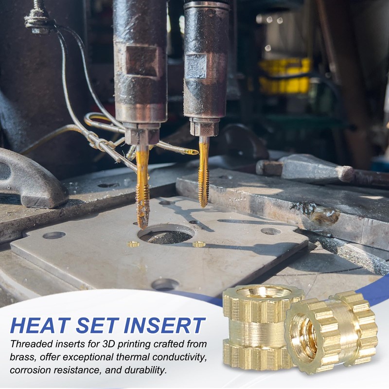 Threaded inserts for 3D printing crafted from brass, offer exceptional thermal conductivity, corrosion resistance, and durability. They are resistant to breaking or deformation, and no to rust. The knurled nut design ensures high tightening torque, making it secure and less prone to detachment during rotation.