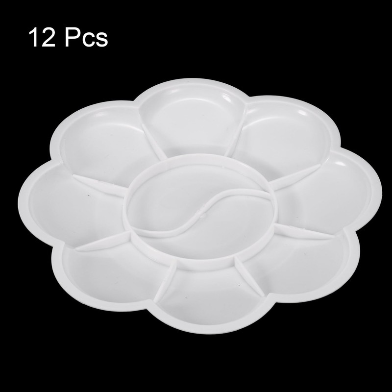 PATIKIL 12Pcs Paint Tray Palette, 4.5"/11.5cm Painting Palette Plastic Palette Flower Shape for Watercolor Gouache Painting Art Craft DIY Project, White