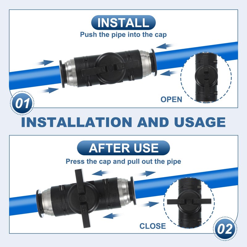 - Instructions:Installation is simple and fast. When using, simply align the air pipe with the pipe connection, insert it directly to achieve a seal-proof seal, and press the lid to easily pull out the air pipe. It also has a rotating design, so that the direction can be changed 360° after installing the pipe.