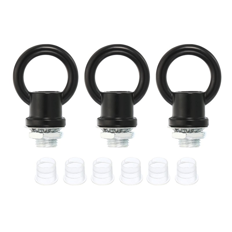 PATIKIL 15kg Load 18mm ID M10 Lamp Female Loop Holder, 3 Set Lifting Eye Nut Hook Ring Shape Structural Support to Chandelier Lighting Fixtures, Black