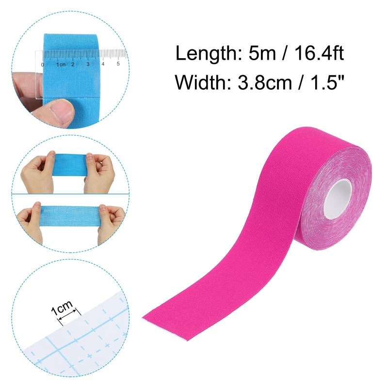 - Color: Rose Red; Material: Cotton; Length: 5m / 16.4ft; Width: 3.8cm / 1.5 Inch; Packing List: 1 Roll x Athletic Tape