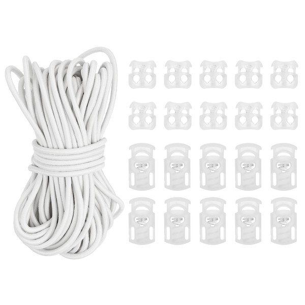 PATIKIL 16 Yard Elastic Bungee Cord & 10pcs Single Hole Cord Lock & 10pcs Double Hole Spring Toggle Stopper for Paracord Drawstring Shoelace Clothing Backpack Bags, White