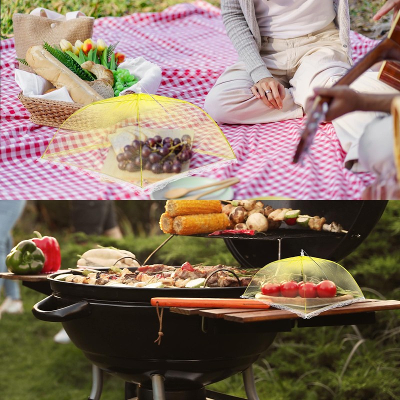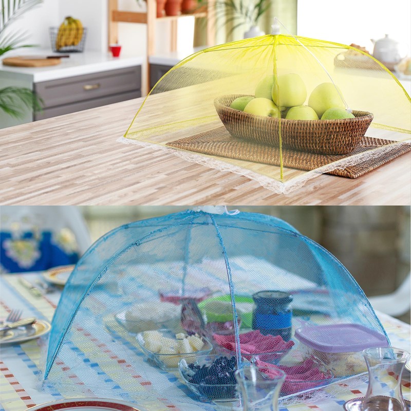 - The mesh covers like an umbrella, effectively protecting your food from small animals and trash. It can not only be widely used indoors, such as restaurants, kitchens, dining tables, coffee tables, living rooms, etc. but can also be used outdoors, such as family barbecues, picnics, camping, parties, etc.