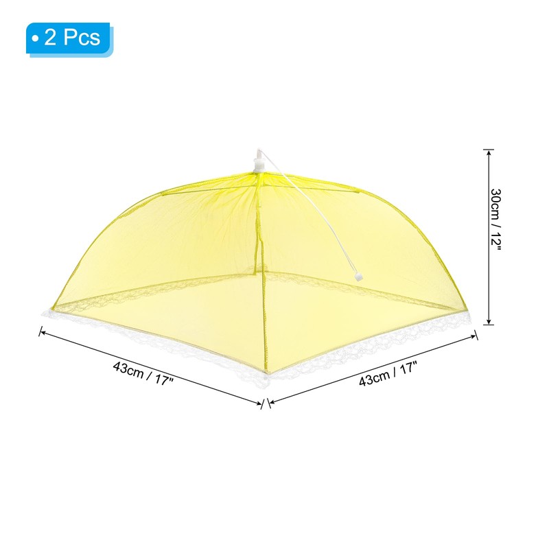 - Specification: Color: Yellow; Material: Mesh; Extended Overall Size: 43x43X30cm / 17x17x12" (L*W*H); Package List: 2 x Mesh Food Covers