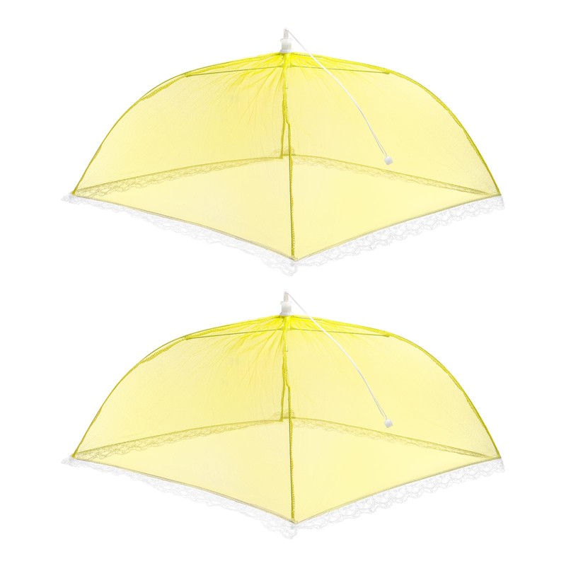 PATIKIL 17"X17" Mesh Food Covers, 2 Pack Collapsible Reusable Fruit Vegetable Food Screen Tent Umbrella for Kitchen Outdoor Picnics BBQ Party Camping, Yellow