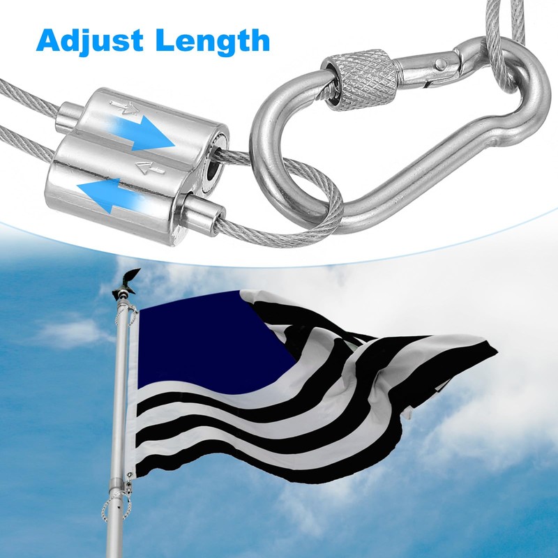 - Anwendung: Die Befestigungsringe für den Fahnenmast dienen nicht nur dazu, den Fuß der Fahne so nah wie möglich am Mast zu befestigen, damit die Fahne leichter gehisst und gesenkt werden kann, sondern sie verringern auch die Spannung an den Ösen der Fahne und tragen so zu einer längeren Lebensdauer der Fahne bei. Außerdem können Sie den Fahnenmast gegen den Mast lehnen, ohne dass er sich verformt, selbst bei windigem Wetter.