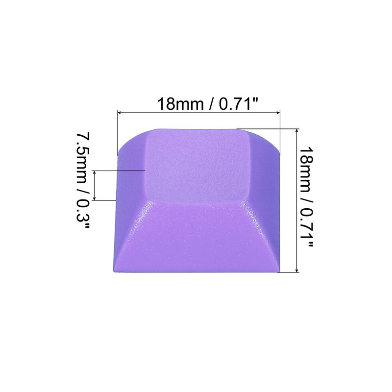 - Color: Purple; Material: PBT; Fit for: Universal MX Switches Keyboard; Size: 18 x 18 x 7.5mm / 0.71 x 0.71 x 0.3 inch (L*W*H); Packing List: 10 x Keycaps