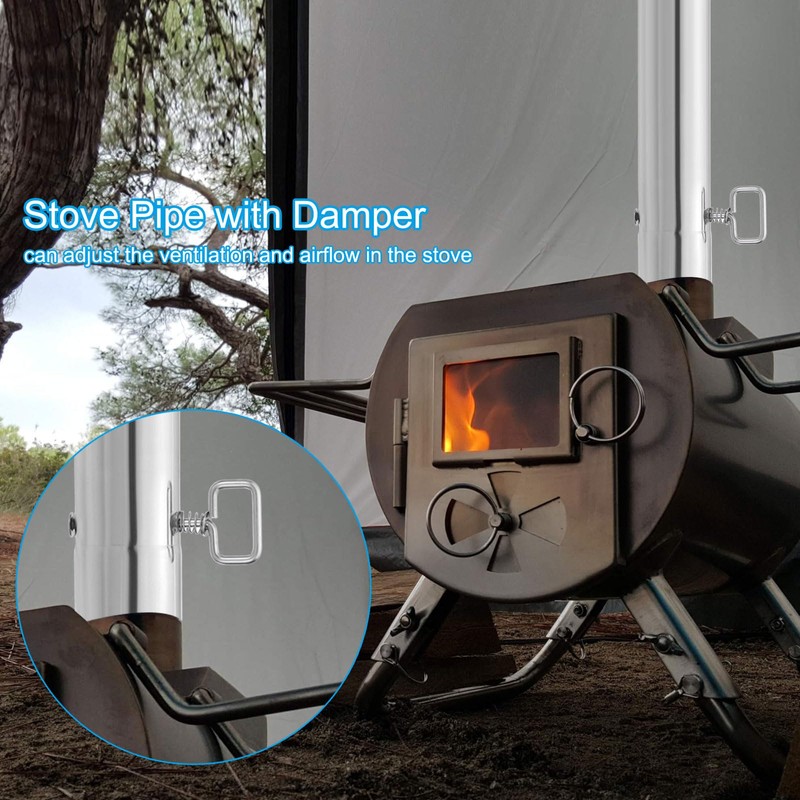 - Application: The tent stove pipe with damper is suitable for hot tents, hammock tents, and RVs for outdoor barbecues, camping, and other outdoor activities. It can help the stove extend the warm time during the night.