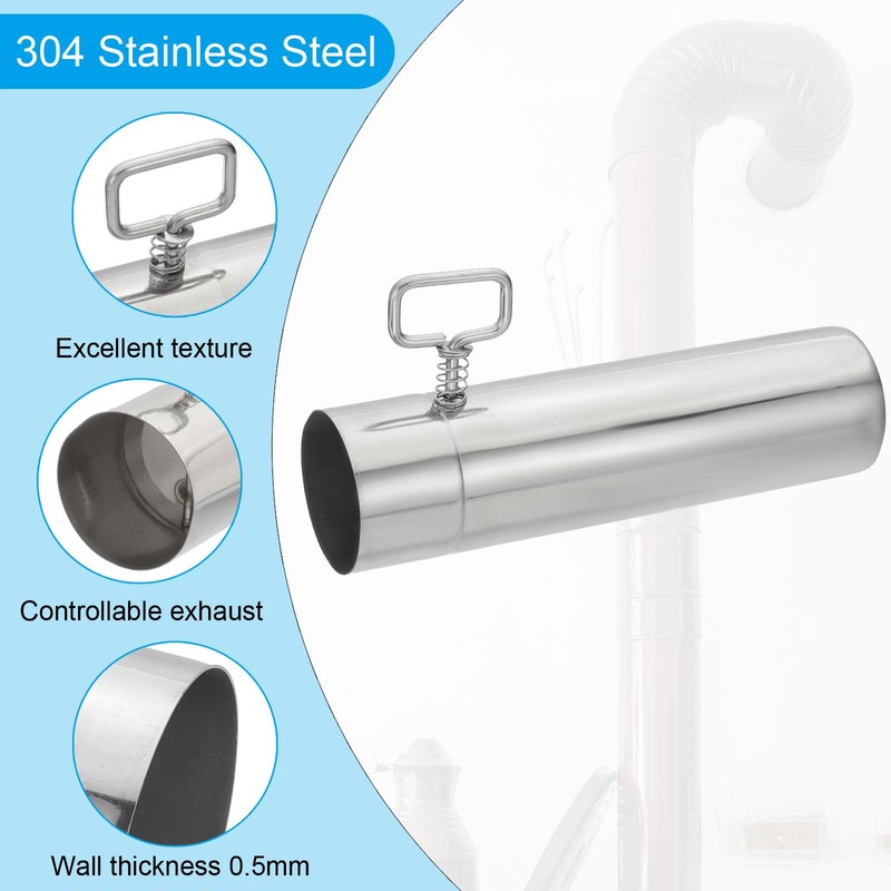 PATIKIL 2.36 Inch Stove Pipe with Damper, 304 Stainless Steel Thickened Tent Stove Chimney Pipe for Outdoor Camping Stove Vent Smoke Exhaust, 8.66 Inch Length