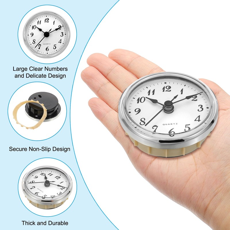 PATIKIL 2.8" 70mm Quartz Clock Insert, Round Quartz Movement Miniature Clock Mini Arabic Numeral Clock Fit 61mm/2.4" Diameter Hole for Replacement Home, Silver Tone/White, Style 12