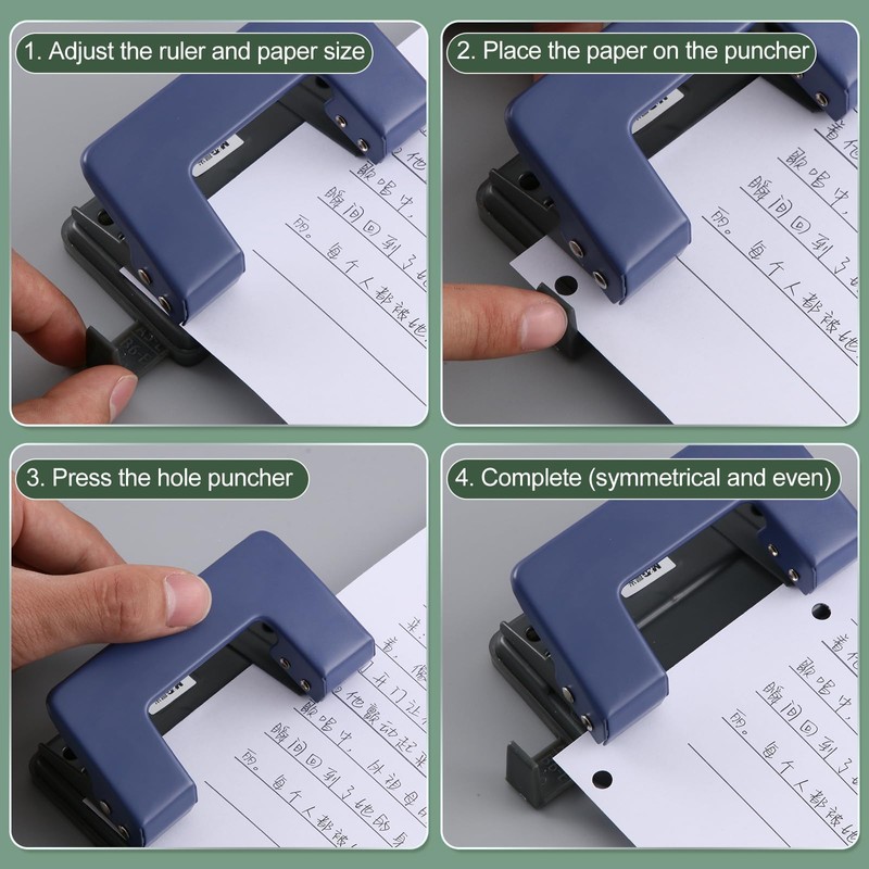 ⭐【With paper size ruler】Provides accurate paper punching: adjustable paper guides accommodate different paper lengths, and the end stop holds the paper right against where it should be, so the holes that come out are always aligned, keeping the holes in the paper in the same position every time.