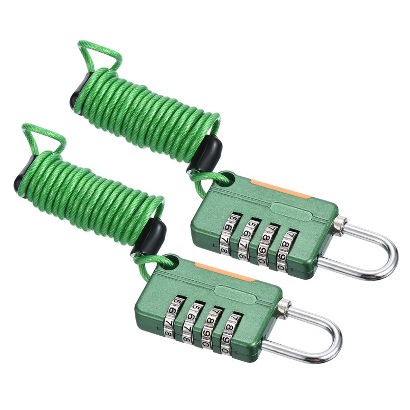 - Size: The lock steel cable stretched length is 1 m / 3.28 feet; steel cable diameter is 3.5 mm/ 0.14 inch; combination padlock length is 70 mm/ 2.76 inch; combination padlock width is 28 mm/ 1.1 inch; shackle thickness is 14 mm/ 0.55 inch; color is Green; lock material is zinc alloy; cable material is steel; packing list is 2 x resettable combination locks