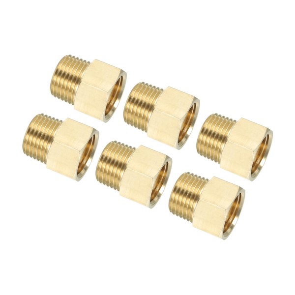 PATIKIL 2 Pack Brass Pipe Fitting Hex Bushing, 1/2" NPT Male to 1/2" NPT Female Reducer Adapter Pipe Extension Fittings for Tub Spout Shower, Golden
