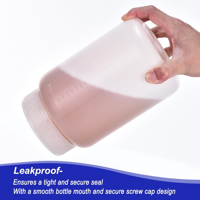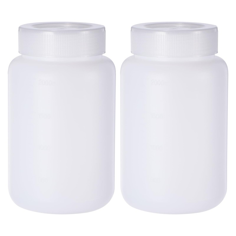 PATIKIL 2 Pcs 2000ml Reagent Bottles, PE Wide Mouth Round Graduated Bottles with Screw Cap for Lab Water Reagent Liquids Solid Sample Storage Seal, Transparent White