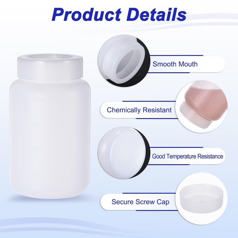 - Material: PE(Polyethylene); Capacity: 2000ml; Total Size: 131 x 221mm / 5.16 x 8.7 inch(D*H); Package List: 2 x Reagent Bottles