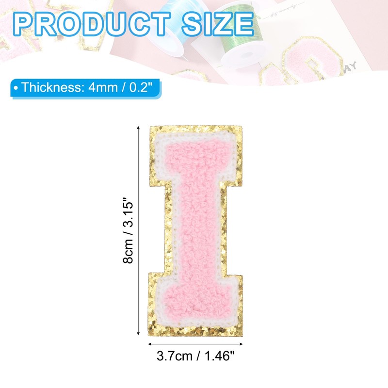 PATIKIL 2 Pcs Iron on Letter Patches, Chenille Glitters Letter Patch Pink, Alphabet I