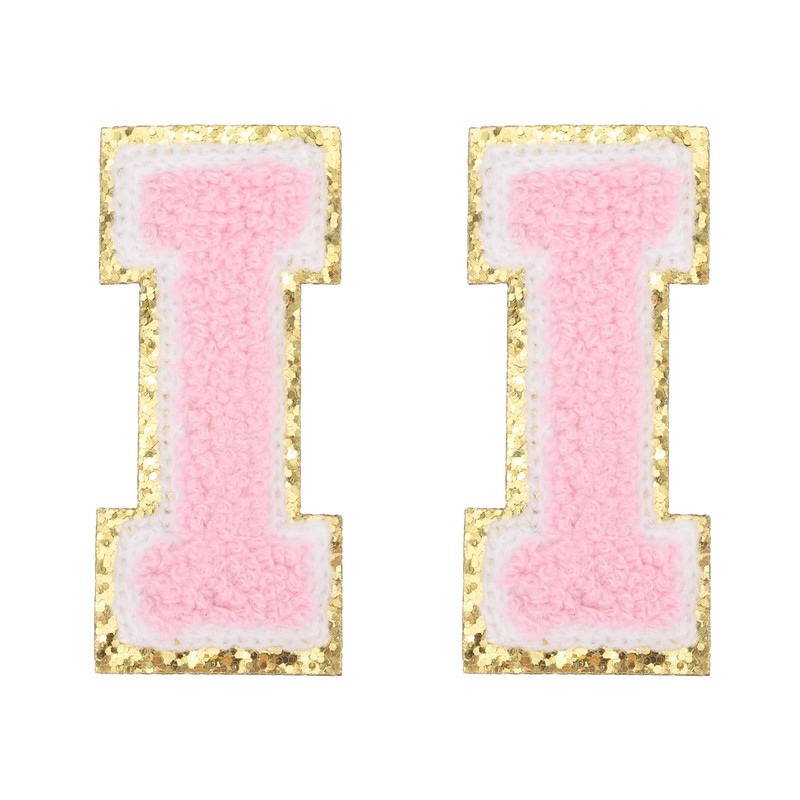 PATIKIL 2 Pcs Iron on Letter Patches, Chenille Glitters Letter Patch Pink, Alphabet I