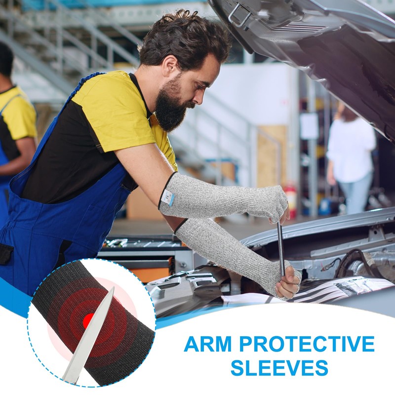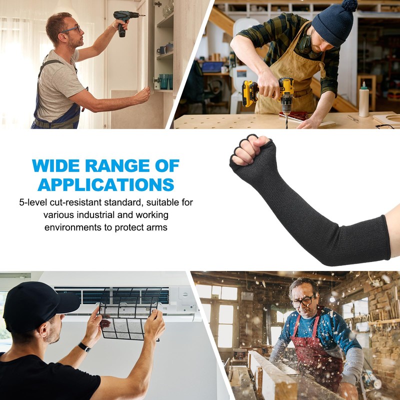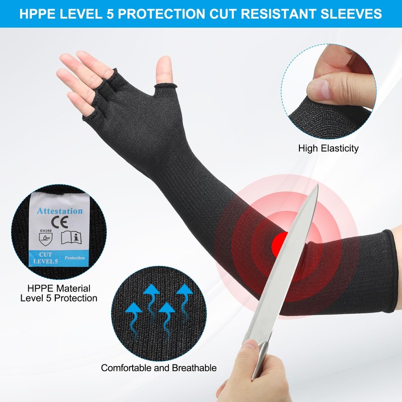- Application: HPPE arm protection sleeves with a 5-level cut resistance standard are designed to protect arms from cuts in various industrial and work environments. Suitable for manufacturing plants, construction sites, auto repair shops, metalworking industries, kitchens, gardens, farms, or any workplace where arm protection is needed